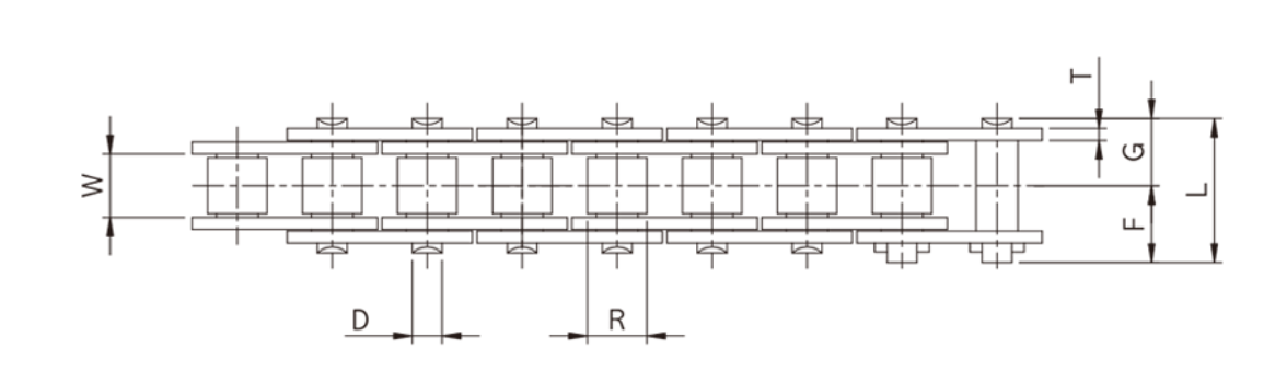 표준형 로울러 체인보다 피로강도가 높은 장점이 있으며, 컨베이어 체인처럼 이송물을 직접 체인위에 적재하여 사용할 수 있습니다. 또한 스프라켓은 표준형 로울러 체인의 것과 호환이 가능합니다.