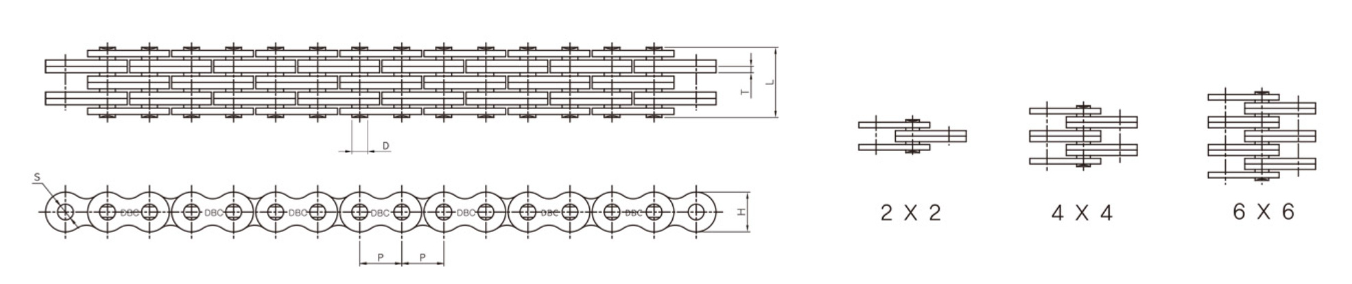 플레이트의 외형 및 두께, 핀의 외경은 동일피치의 표준형로울러 체인과 같습니다.