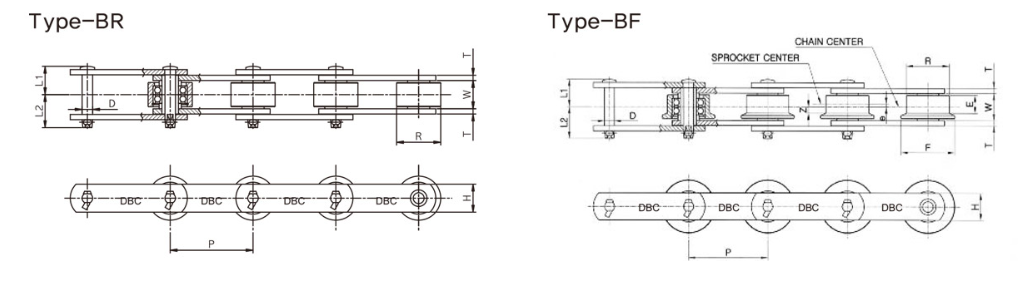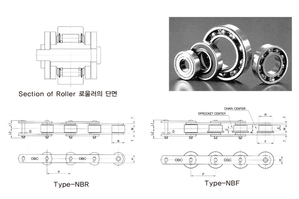 • 로울러에 볼베어링을 넣거나 로울러와 부쉬 사이에 니이들을 넣은 형식의 체인입니다.