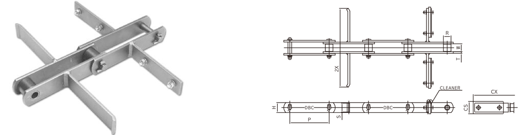 곡물전용 수평 스크레이퍼용 (10°이내의 상향, 하향구배)체인입니다.