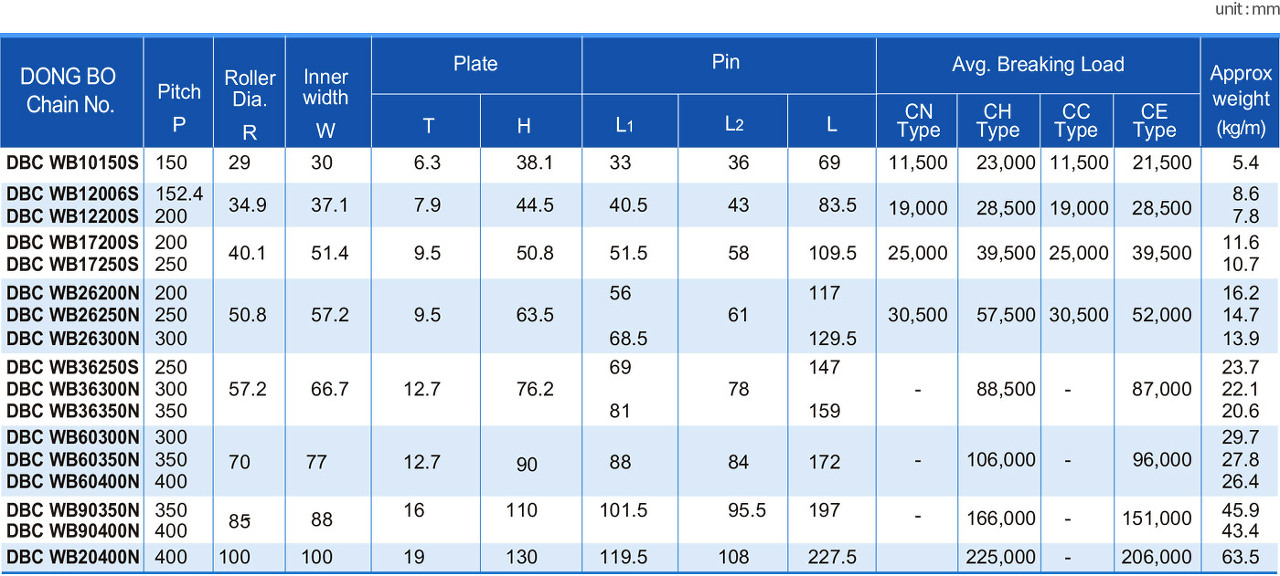 수송물을 수직으로 고속운반하는 고속의 버켓 엘리베이터에 사용됩니다. 강도, 내충격성, 내피로성이 우수합니다.