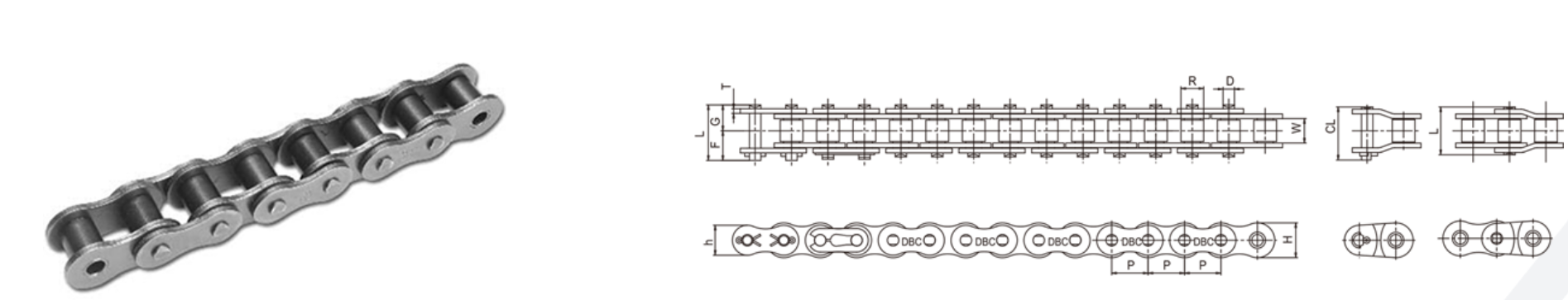 사진이 체인은 동력전달용 로울러 체인의 표준형으로서 한국규격 KS B 1407 , 미국규격 ANSI B 29.1 , 일본규 JIS B 1801, 국제규격 ISO R 606(A형)의 규격과 동일하게 제작되며 전제품 KS인증을 획득한 고품질 제품입니다.